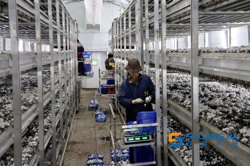 在降低人力成本的同時(shí),蘑菇生長(zhǎng)周期大大縮短,菇房年周轉(zhuǎn)次數(shù)增加到7次,每周轉(zhuǎn)期產(chǎn)量提升至每平方米60斤,全年都能無(wú)差別供應(yīng)生鮮。